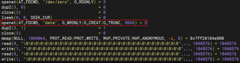 那 dd 加与不加 oflag=direct 的区别是啥呢?我们再次搬出 strace 神器,来跟踪一下这两种情况下 dd 调的系统调用的情况。